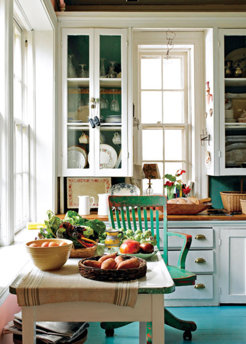 Ay! esas, esas cocinas. Que te ves ya sentadita en la silla verde, dispuestísima a cortar un millón de judias verdes sin rechistar de lo a gustito que estás, o a recrearte pensando en la deliciosa supertarta de arándanos que harás para tus churumbelitos, o en el calorcillo del tazón de café que te vas a tomar mientras miras por la ventana el paisaje campestre y ves como…  Hala! imaginar lo que queráis, en función de vuestro estado de ánimo.