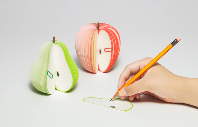 Hay alguien en la sala capaz de sacar 165 laminillas de una manzana o de una pera?… que mande foto de la proeza. De momento tenemos estas de papel para escribir notas, dejar mensajitos con la sutil indirecta: faltan manzanas en esta casa!!