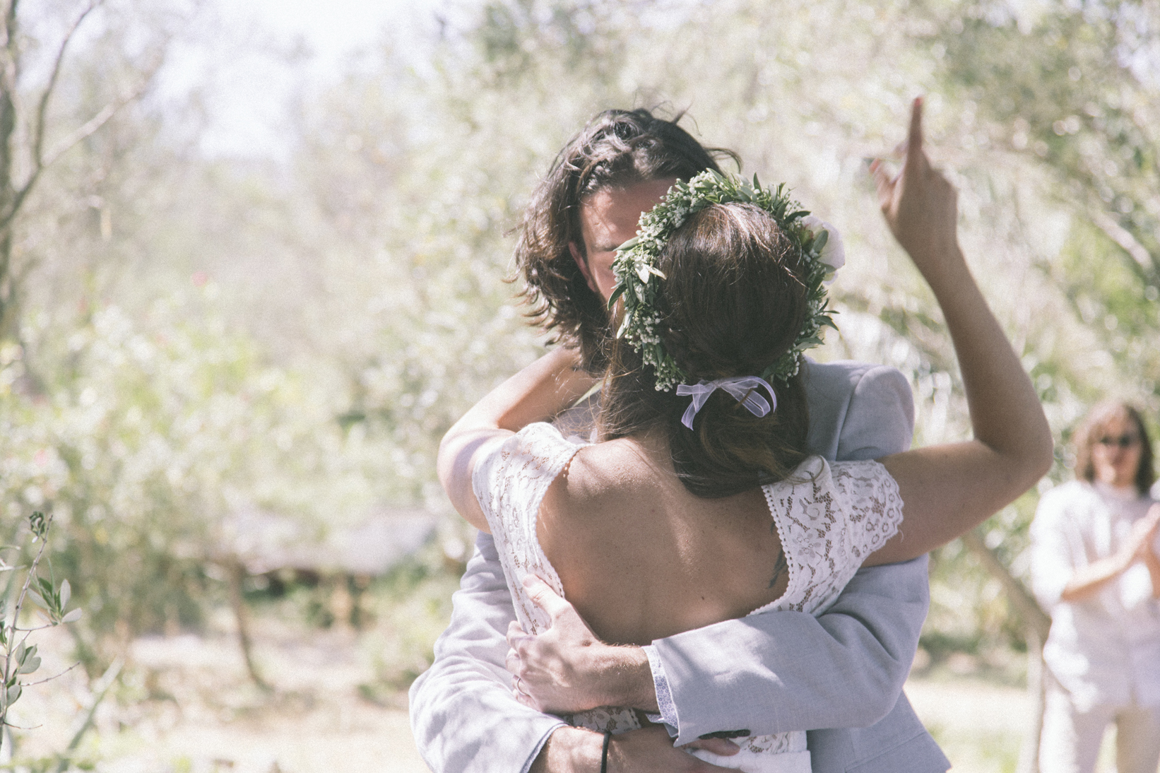 Una boda 100% mediterranea, la novia llego en barca, en la decoración floral los olivos eran protagonistas, se casaron mirando al mar… ¡NOS ENCANTA!